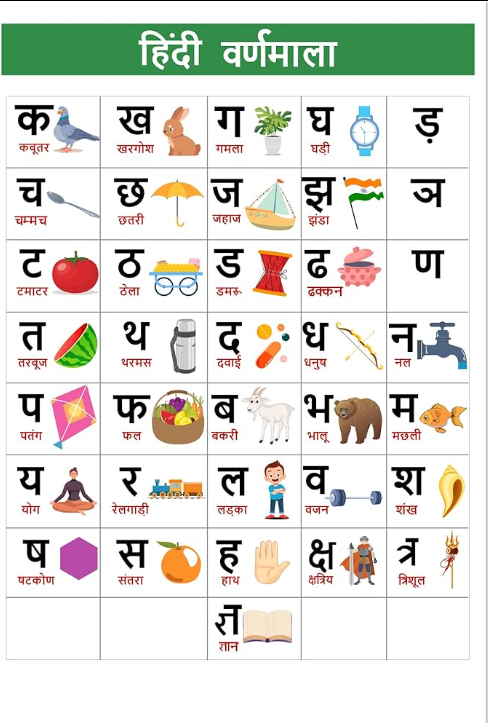 | क-वर्ग | क, ख, ग, घ, ङ | कंठ (गला) | कमल, खरगोश, गमला |