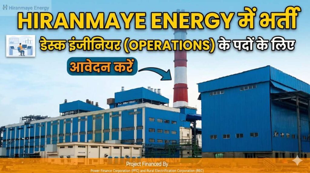 Hiranmaye Energy Limited (HEL) ने पश्चिम बंगाल के हल्दिया स्थित अपने 300 MW थर्मल पावर प्लांट के लिए ‘डेस्क इंजीनियर – ऑपरेशन्स’ के पदों पर भर्ती निकाली है। यह भर्ती असिस्टेंट मैनेजर और डिप्टी मैनेजर के स्तर पर की जा रही है। शिक्षा: इलेक्ट्रिकल या मैकेनिकल इंजीनियरिंग में BE/B.Tech।